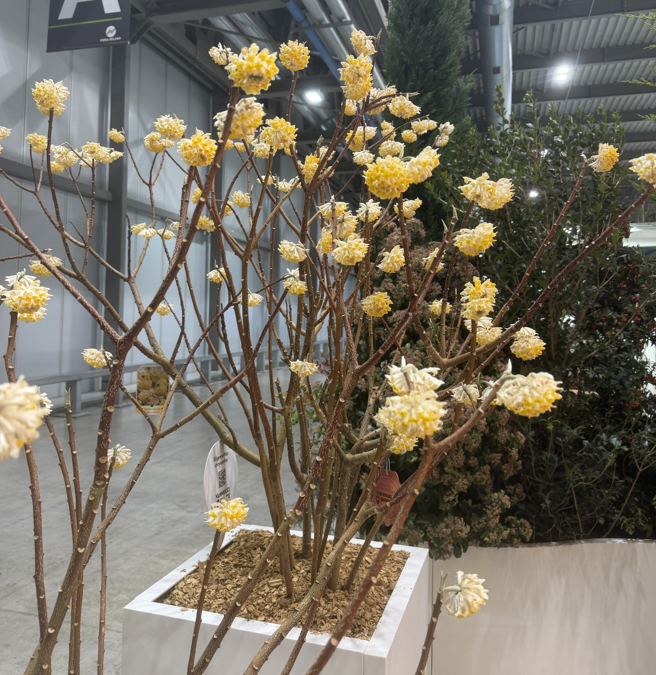La sorpresa che conclude il nostro viaggio nel verde arriva con un’essenza meno conosciuta ma indimenticabile: la Edgeworthia chrysantha, nello spazio di Vannucci Piante, un fiore raro e intenso che invita a riscoprire il verde anche attraverso l’olfatto.