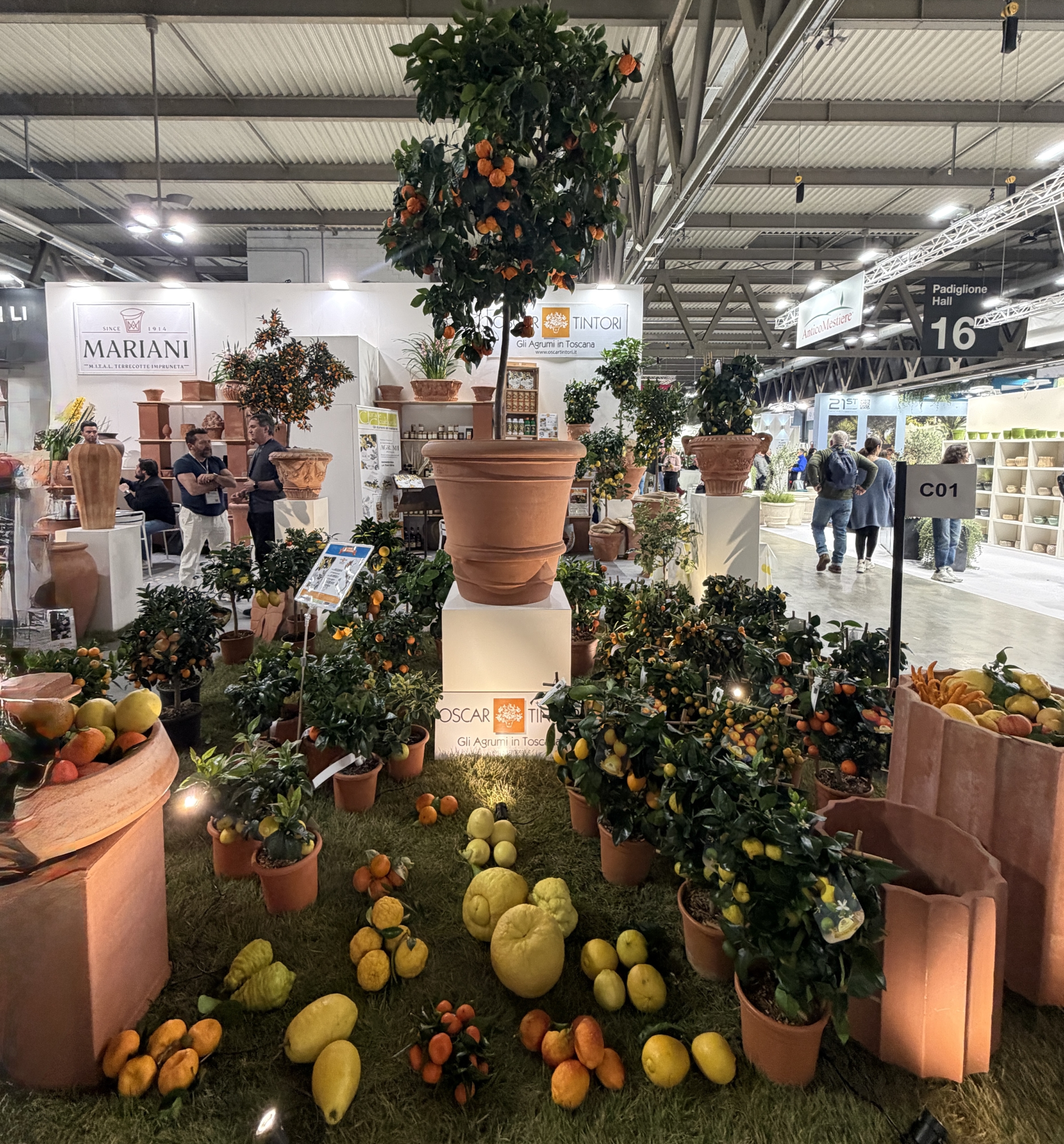 Tra gli stand più scenografici della fiera spicca Oscar Tintori, riferimento internazionale per gli agrumi ornamentali.